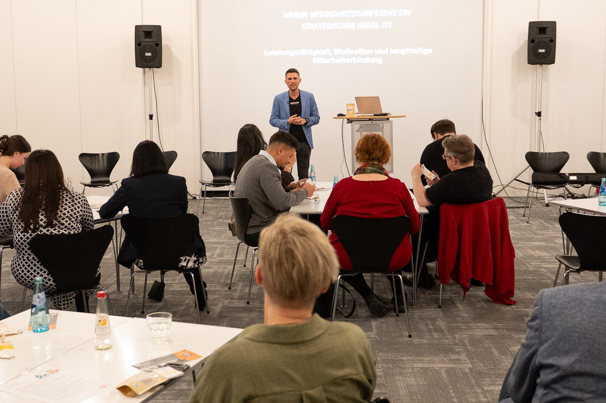 Patrick Hüter, Inhaber von Expedition gesundes Unternehmen macht deutlich, dass Gesundheitskompetenz für wirtschaftlichen Erfolg entscheidend ist.
